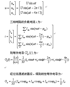 FBD法基本思路是:把实际电路中的负载等效为理想电导元件,认为电路中的功率都消耗在这个等效电导上,根据等效电导对电流分解,讨论各电流分量的性质[2]。